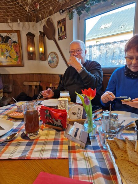 Wieder einmal ging es nach Klipphausen in die gemütliche Kaminhütte des Gasthofs „Meissner Blick“. Diesmal lockte das beliebte „Schlachte Spektakel“ die Besucher dorthin.